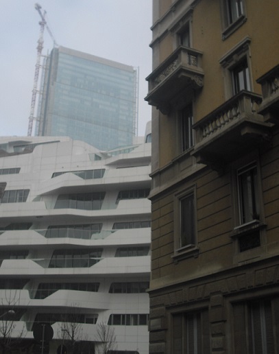 Faccio fare a Bruno una lieve deviazione, lo porto in via Euripide, zona ex Fiera. Ammiro con lui la misura della case d’inizio Novecento, fra queste una di Ansnago e Vender. Ma lui è attratto da altro: “Cos’è quel transatlantico laggiù”, dice, sorpreso. Ecco, forse un quartiere che i milanesi non adotteranno mai credo sia quello delle residenze di Hadid e Libeskind. Non tanto per la qualità progettuale (a dir la verità bassa, le “archistar” qui hanno fatto da foglia di fico di una clamorosa operazione speculativa), non tanto per l’estraneità del carattere degli edifici al gusto meneghino (sembrano provenire direttamente da Miami beach), è per quell’aspetto di fortilizio impenetrabile, di comunità recintata che guarda con sospetto il resto della città.