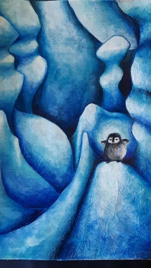 Mi trovavo in una cattedrale di ghiaccio ed era appena iniziata una funzione di pinguini. La pinguina era lì con il suo cucciolo, che somigliava ancora a un grosso uovo grigio ricoperto di lanugine, e se ne stava un po’ discosta dalla folla, distratta dalla luce che attraversava i fregi azzurri. All’improvviso, un’orca lucida, verde di pensiero dimenticato, è sgusciata fuori dall’acqua ed è scivolata sulla navata. Sembrava che avesse in mente quell’entrata da mille anni, per la precisione con cui ha puntato il piccolo della pinguina e… l’ha rubato! Poi, è ritornata negli abissi.