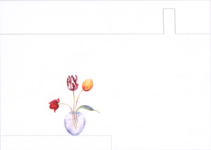 Gli attributi della Gioia sono disseminati in tutto il lavoro di Della Casa. Affianco ai fiori, al vaso trasparente, al rosso del vino, non manca l’usignolo e neppure il cardellino che ha ricevuto in dono dalla Garzoni insieme al fico e al buffone di vetro. Soprattutto non manca il bianco del vestito della Gioia, disteso e aperto su tutto il foglio, perché l’emozione del fiore, la bellezza della frutta devono rimanere piccola cosa in quel campo di luce. La Gioia non pecca mai di tracotanza, lavora di tocco, in piccolo spazio, E tutto quel bianco non è che il regno dell’attesa cortese di un suo breve apparire. Nelle ultime opere poche linee nette e sicure di matita tracciano spazi che si sarebbe tentati di chiamare metafisici, ma quelle linee non chiudono alcun spazio, piuttosto inventano l’orizzonte come un’unica soglia che la pittura può varcare, di nuovo, in presenza.
