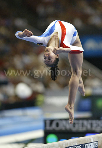 La rumena Catalina Ponor, che vince volando due ori nella ginnastica ed sale sul podio con un volto così forte e preciso da sembrare dipinta e con un sorriso talmente fragile da spaventare.