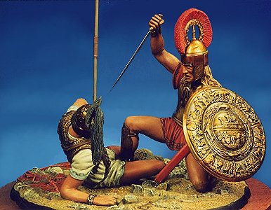 Ma non è una vendetta semplice. Pensa a Pallante. E’ il figlio del re italico Evandro, ma incarna anche un tipo letterario: l’efebo guerriero fedelmente legato a un combattente più anziano (Enea). La versione esemplare di questa stessa coppia è, sempre nell’Eneide, Eurialo e Niso, mentre il modello originale, benché lievemente diverso, è quello di Achille e Patroclo…