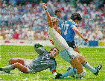Nel corso del primo tempo Maradona si era già reso discutibilmente indimenticabile realizzando un goal di mano senza che l’arbitro, nonostante le proteste degli inglesi, se ne accorgesse. Nelle interviste successive Maradona avrebbe ironicamente sostenuto che in quel goal si era manifestata “la mano di dio”.