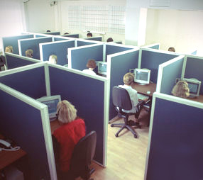 Una ventina di donne, ognuna con la sua postazione telefonica, le pagine gialle come oggetto di consultazione e delle lastre di metallo che separavano gli spazi tra le lavoratrici. Dovevamo telefonare a aziende di medio livello, con dotazione informatica e telefonica media, e proporre i nostri servizi. Oviamente, anche perché non c’erano sistemi di controllo reale del nostro lavoro, fatto il numero di telefonate necessario ci si occupava anche di altro.