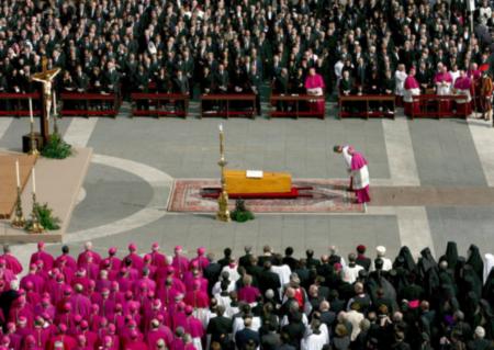 Cinquantuno telecamere, per noi spettatori, non significano moltiplicare la nostra presenza e migliorarne la qualità, non significano essere più presenti, ma essere più manipolati, non significano essere più vicini, ma essere più lontani, messi a debita distanza dalla finzione organizzata da un regista libidinoso tutto immerso nella sua orgia audiovisiva. Cinquantuno telecamere significano inquadratura larghissima di piazza San Pietro, dettaglio della campana che suona a lutto, inquadratura degli uomini con la divisa della protezione civile che distribuiscono bottiglie d’acqua ai “pellegrini”, significano bandiere che sventolano sulle teste dei “pellegrini”, inquadratura di gente con il turbante, il presidente Ciampi che stringe varie mani, il vaticanista che commenta con le cuffie sulle orecchie, collegamento con Circo Massimo, schermi giganti in Polonia, inquadratura di Bush con moglie padre ed ex avversario… Il tutto, si badi bene, non metabolizzato e donato alle nostre capacità pensanti come può fare un DeLillo in Underworld o in Mao II (cito DeLillo perché in alcune sue scene di massa la tecnica della moltiplicazione dei punti di vista è la stessa) ma scaraventato con violenza propagandistica sulle nostre nudità di esseri, condizionati da un’inevitabile formazione cristiana, in preda all’emozione e veicolati dalla incessante parlantina esaltata di chi commenta.