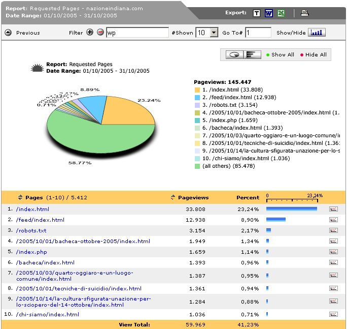 Nel mese di ottobre sono stati pubblicati su Nazione Indiana 90 articoli, portando il totale a 1.365 post e 13.429 commenti. Il traffico è rimasto stabile sui livelli di settembre, con un lieve calo di sessioni e un aumento del consumo di banda di cui scriverò in futuro: