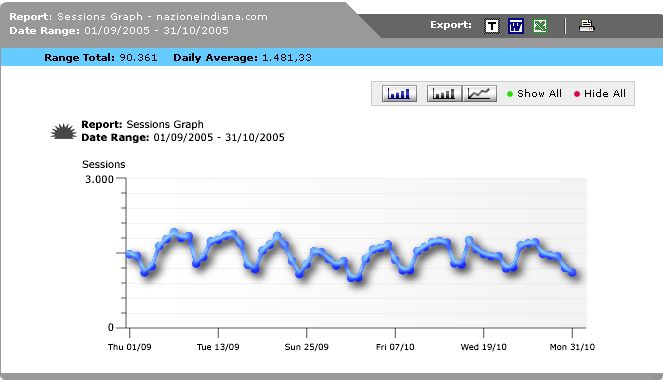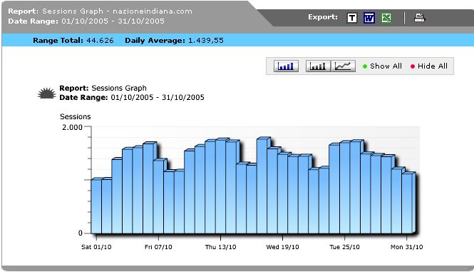 Lo strumento di analisi del traffico è Urchin. Ecco il grafico delle sessioni di ottobre: