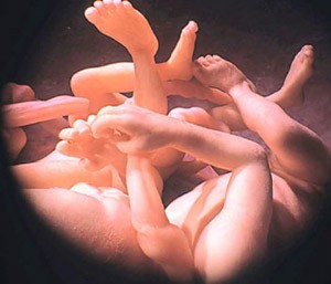 (qui si conclude l’appunto del giugno 2003. Adesso guardo una foto apparsa su repubblica.it di qualche settimana fa. Nella foto si vedono dei feti fotografati in tre dimensioni. Nella foto che guardo si vede una specie di albero che al posto dei rami – ma potrebbero anche essere delle radici rampicanti – ha le braccia e le gambe flesse e distese di alcuni feti. Guardo questo groviglio e penso che quanto detto a proposito del diventare responsabili dell’irresponsabilità valga, in un modo che non so spiegare, anche per lo scrivere. Guardo e mi domando se e perché io e la maggior parte delle persone che conosco e che conosciamo decideremo mai di arrampicarci su quell’albero)