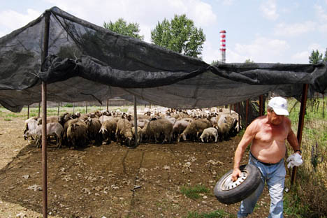 La foto è bella. Ha qualcosa di molto più attaccato alla vita che alla morte. Forse è quel tendone nero per proteggere le pecore. Forse è la sfida.