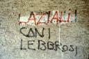Tracciata con uno spray azzurro, occupava almeno tre metri della parete giallastra del macello. Le linee delle lettere erano come sfarinate, i frammenti più grossi dello spray, quelle molecole di colore, ancora fresche, appena uscite dal serbatoio metallico nel quale galleggiavano prima di essere sparate attraverso il beccuccio di plastica della bombola, sembravano già consumate, come ingoiate dai mattoni, immediatamente assorbite dalla porosità del tufo.