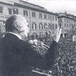 Ancora una volta mi tocca di essere del tutto d’accordo con Tashtego. Ricordo nella mia adolescenza un comizio di Almirante a Desenzano del Garda, dov’io vivevo. L’uomo però semprava più un bravo istrione che un politico qualsiasi, gli rimaneva la battuta, certo arguta, ma niente più. Quel che compicciava con Caradonna e Servello era ben altro, meno elegante e meno aristocratico.