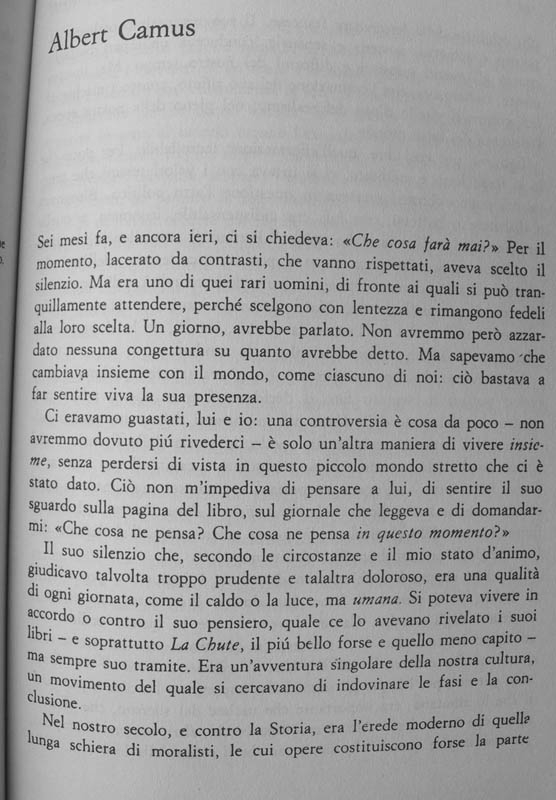 Camus l’ho ripreso in mano recentemente ed è un autore di un’onestà e integrità come poche volte ho trovato.