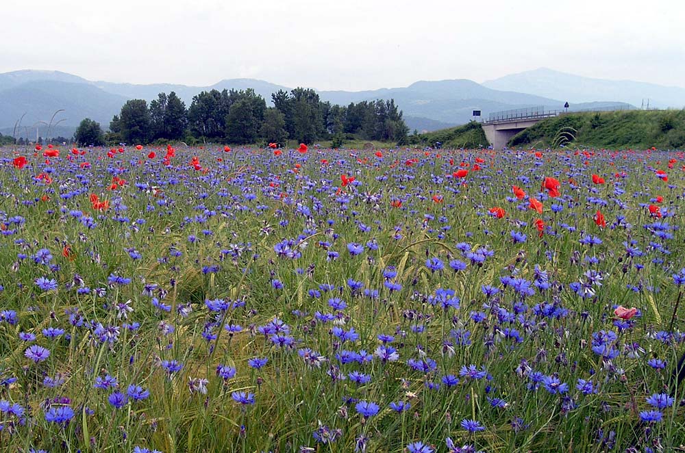 Entro nel campo blu dei fiori: l’immagine è bella.