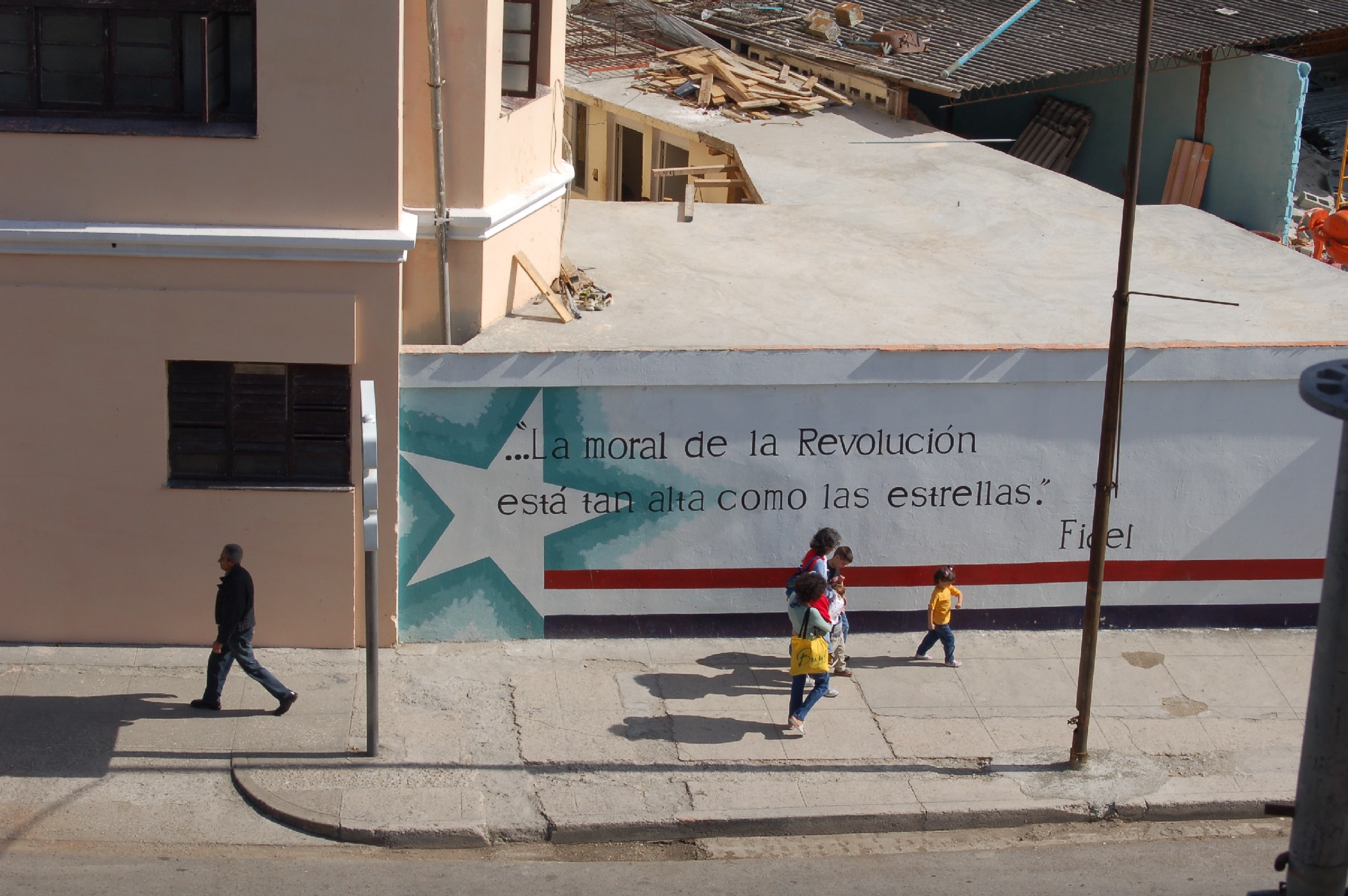 Per me il senso (e il nonsenso) dell’eccentricità cubana nel mondo contemporaneo sta nell’aspirazione ingenua – e nell’involontaria ironia – del murale rappresentato nella foto: quanto è distante dalla terra la “morale della rivoluzione”, e chi potrà mai incarnarla…