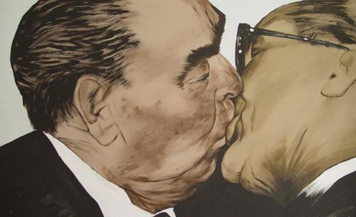 Nella foto / Budapest – il murales che ritrae il famoso bacio tra Breznev e Honecker (dal sito dell’eccellente disegnatore Riccardo Marassi)