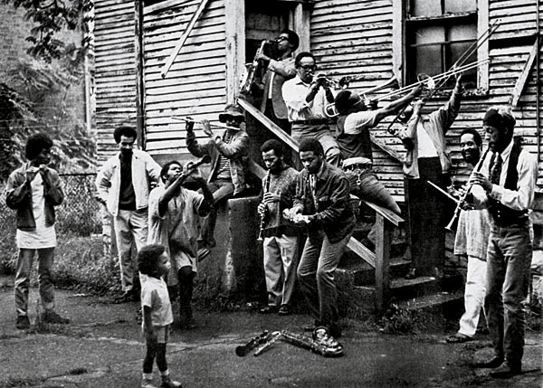 La più nota espressione di questa poetica fu l’Art Ensemble of Chicago (Lester Bowie, Roscoe Mitchell, Joseph Jarman, Don Moye, Malachi Favors), che fondeva tradizione e avanguardia, ricerca sperimentale e sfrenata clownerie: celebri i loro travestimenti e i loro volti dipinti con maschere africaneggianti. Il loro motto: “Great Black Music: Ancient To the Future”, sintetizza tutti questi elementi.