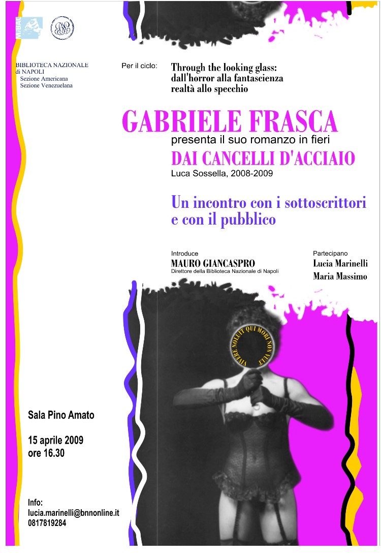 Articolo precedenteElogio dell’ozioArticolo successivoLa paura FRASCA: DAI CANCELLI D’ACCIAIO Condividi:FacebookTwitterMi piace:Mi piace Caricamento... mosse domenico pinto 13 Aprile 2009 Tagsdai cancelli d'acciaiogabriele frascanarrativaromanzo 1337 1337 1 commento tipo dalla tempesta d’acciaio di juenger? I commenti a questo post sono chiusi articoli correlati annotazioni Spitfiredomenico pinto - 13 Novembre 20131di Andrea Cortellessa «Non è un romanzo storico, ma la vicenda di un uomo che si guasta». Così definiva un... carte Creature di ceneredomenico pinto - 6 Agosto 20131di Bianca Madeccia Studiava silenziosamente le fondamenta del creato, intima, fonda come un sentimento del quale si ha pudore. Un... carte Emmanuela Carbè, Mio salmone domesticodomenico pinto - 3 Agosto 20132di Andrea Cortellessa Stringi stringi, la vita è tutta una questione di fuori e dentro. Lì fuori c’è un mondo... a gamba tesa Del sentimentodomenico pinto - 30 Luglio 201348 di Livio Borriello uno spettro si aggira fra i libri: il sentimento qual è il pericolo che incombe sul mondo secondo... annotazioni Nota su Geologia di un padredomenico pinto - 24 Maggio 201310di Livio Borriello Ci sono libri che non sono solo libri, ma cose della vita che attraversano lo stadio di... cinema Street of Crocodilesdomenico pinto - 23 Aprile 20130 carica altri post domenico pintohttps://www.nazioneindiana.com/Domenico Pinto (1976). È traduttore. Collabora alle pagine di «Alias» e «L'Indice». Si occupa di letteratura tedesca contemporanea. Cura questa collana.
