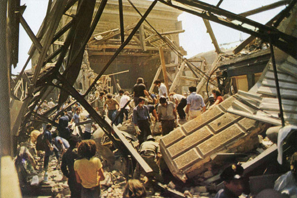 Finché, alle 10.25, il boato. Più di quello.. Una deflagrazione che mi fece pensare al tonfo sconvolto di un aereo contro il suolo della città, come una freccia scoccata da diecimila metri e lanciata contro la città da un gigante nemico, il gigante di una fiaba nera. Saltai giù dal letto della camera degli ospiti del mio amico e corsi nel corridoio che era diventato della paura. “Cosa è successo?” gridai. Mi venne incontro Boratti, col la camicia sahariana tutta aperta sul petto, i capelli arruffati e il viso bianco. “Non lo so Fabione, sembra uno scoppio…”.