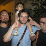 confermo che la bimba è bellissima, il pinto è timidissimo, e a forlani volevo rubare il cappello. (mi ripropongo di comprare il suo libro, anche, che “letto” fa una certa impressione)