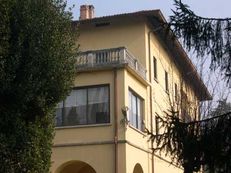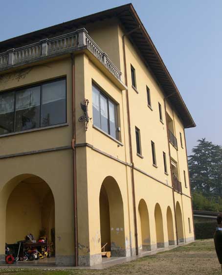 La Villa è oggi un condominio come altri, nonostante il parco intorno. E pensare che qui venivano in villeggiatura durante i periodi estivi i fratelli Gadda: Carlo, Clara e Enrico. In una memoria autobiografica dettata nel 1963, anno della Cognizione del dolore, Carlo Emilio, all’epoca settantenne, scriveva: “Suo padre costruì la fottuta casa di campagna di Longone nel 1899-1900 e questa strampalata casa gli rimase appiccicata fino al 1937. Panorama stupendo sui laghi brianzoli, Monte Resegone”. Strampalata perché costruita male, con criteri sballati, come si capisce dal romanzo che la vede protagonista. Il terrazzo è la cosa peggiore; ci si entra direttamente dalla strada, scrive nella Cognizione, attraverso “il piccolo giardino dietro casa, con il quale comunicava direttamente, dopo il solo ostacolo d’un gradino di serizzo”.