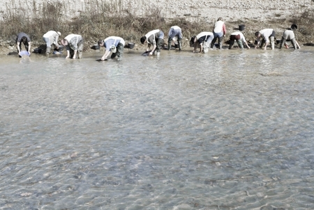 cercatori dell’associazione Oro in Natura durante la gara sociale sul fiume Elvo