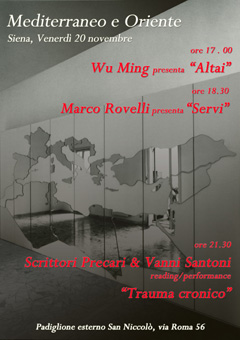 All’interno della rassegna cinematografica Mediterraneo e Oriente (16-21 novembre), trova spazio una giornata per discutere di scrittura con Wu Ming, Marco Rovelli, Scrittori Precari e Vanni Santoni.
