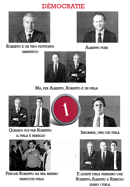 meno male che non c’è, nessun antonio nell’allegra combriccola, se no mi sentivi. Invece rimane il seguente problema squisitamente teoretico: è meglio — del tutto in generale, per carità — essere governati da un pirla o da uno stronzo? Avendo solo queste due alternative, dico.