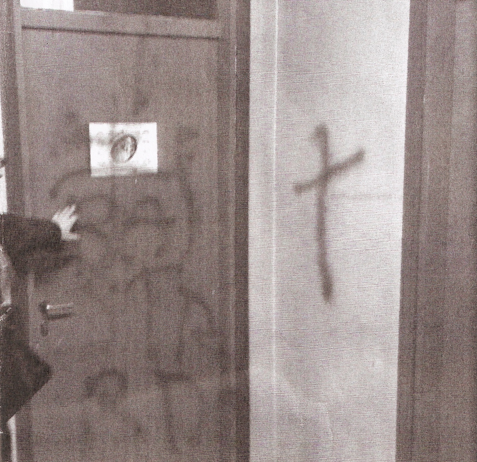 Poi mi ha portato a vedere il suo ufficio, Micco. La notte prima era arrivato, e di fuori, sul muro e sulla porta aveva visto il sangue. Il suo sangue. A forma di croce, che dice morte. “Bastardo” gli hanno scritto. Bastardo con la croce. Un bastardo ancora vivo per non molto. Con la vernice rossa. A non parlare più.