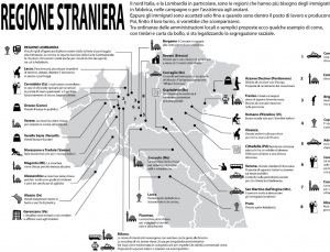 Giuseppe Civati, blogger e politico, pubblica invece un’infografica che mostra attraverso una mappatura la dipendenza del Nord Italia dai migranti. E che illustra la domanda che si pongono molti: è possibile immaginare un’Italia senza i lavoratori immigrati?
