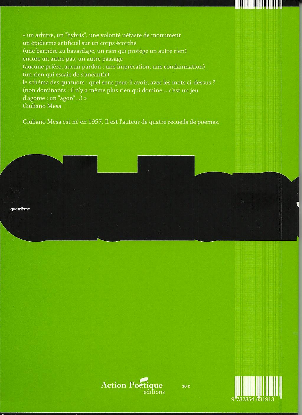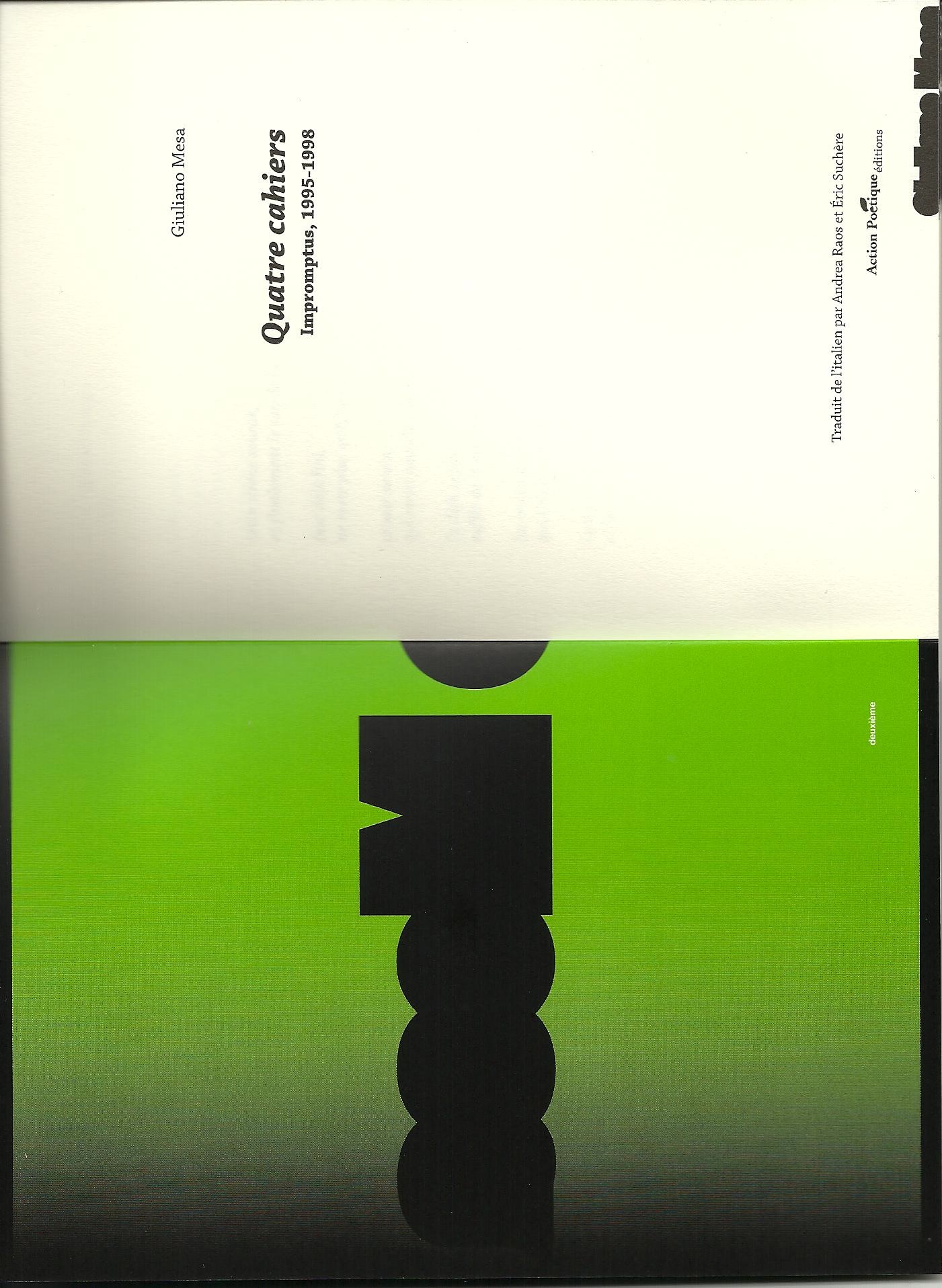 Lode, fortissima lode a Andrea Raos, che ha brigato e sudato e promosso questa traduzione in francese di uno dei più bei libri di Giuliano Mesa, che nella sua edizione italiana, presso Zona, è per ora irreperibile, a quel che me ne si dice
