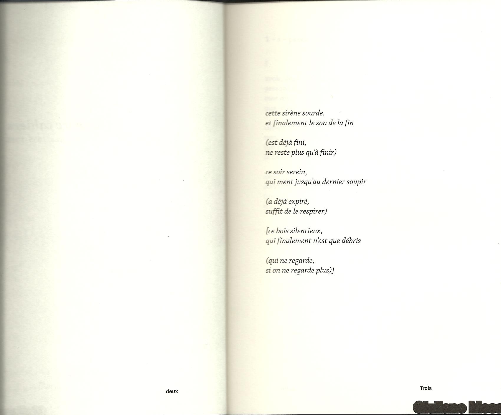 testo importante, e traduzione preziosa. grazie ad Andrea e a Éric per il lavoro prezioso (e sicuramente tutt’altro che facile, considerata la tessitura ardua del libro). (pur composto di vocaboli=cellule sonore all’apparenza semplici)