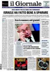 condivido la preoccupazione. Solo che starei attento a segnare una diretta discendenza tra il capo del governo e quel titolo. Le cose sono un tantino più contraddittorie. L’ambiguità, se di ambiguità è lecito parlare, è nel sostegno che il governo offre a Israele mentre contribuisce al rafforzamento della Turchia come controparte (recenti accordi Turchia-Russia-Italia). Paradossalmente, il governo Berlusconi è, nei fatti, meno filo-israeliano della “sinistra”. Tant’è che diversi esponenti del governo hanno avanzato riserve sul blitz e chiesto esplicitamente la fine dell’embargo per Gaza. Poi, certo, la nostra situazione è definibile di “fascismo democratico”, e quindi possono avere cittadinanza certi titoli ed esplicitarsi, senza che nessuno storca il naso, posizioni un tempo impossibili. Ed è quindi sacrosanto indignarsi.