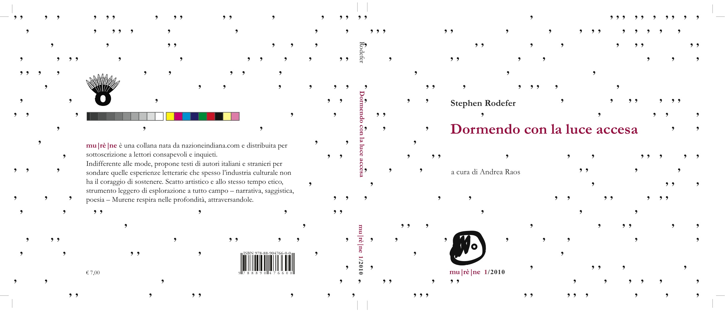 Mi sono abbonato lunedì e stamattina è già arrivato il libro di Rodefer, bellissimo da subito, in quella metafora non poco problematica – o allarmante – che ha per titolo, “Dormendo con la luce accesa”. Congratulazioni. Sono davvero contento di essermi abbonato.