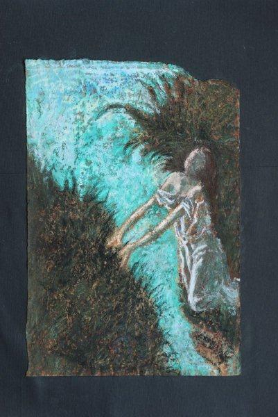 Ciò che gli iniziati facevano nella notte eleusina è sempre espresso col verbo “vedere” e “visione” è il termine che designa lo stadio supremo dell’iniziazione. I pastelli di Monica Ferrando, e le fonti antiche su Kore, che la stessa Ferrando ha curato, condividono la natura liminale del punto dimostrativo di Agamben. Se, in qualche misura, la filosofia ha accesso alla divinità e la pittura all’animalità, la loro commistione dà accesso a un umano separato e auto reggente, soglia, confine e dunque meraviglia di sé stesso. Simone Weil ha annotato nei suoi Quaderni, Il fondamento della mitologia è che l’universo è metafora di verità divine. La declinazione nelle parole di Agamben e nelle figure dai tratti indecidibili ma dai gesti imperiosi di Monica Ferrando, è che il fondamento della mitologia è che l’umano è metafora di verità divine, che l’umano è metafisica – la vita è un’iniziazione alla vita stessa. Metafora rappresentata e nominata. Né interpretata né detta. Kore, quando viene rapita nell’Ade, sta “giocando con le ragazzine di Oceano”. Che una ragazzina che gioca diventi la cifra perfetta dell’iniziazione suprema e della compiuta filosofia – sia, anzi, essa stessa iniziazione e pensiero e sia per questo indicibile – questo è il “mistero”.