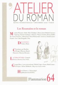 È uscito il numero di dicembre 2010 de L’atelier du roman, la rivista trimestrale di ricerca e dialogo sul romanzo da cui già vi ho tradotto qualcosa (qui e qui). Voglio segnalare questo numero 64 – Les Roumains et le roman perché mi è parso particolarmente stimolante. Invece di incollare qui un noioso indice, vi traduco l’Ouverture, scritta, come da prassi consolidata, dal direttore, Lakis Proguidis. È come un indice, ma più piacevole da leggere e comunica di più e meglio. Gli Incontri di cui si parla sono appunto i Rencontres che tutti i partecipanti alla redazione tengono ogni anno, in una località della Grecia.