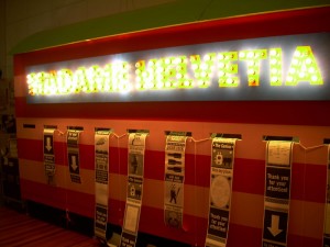 Si comincia tirando “palline di frustrazione” a sagome di cartapesta raffiguranti diversi personaggi. Se le centri, si ribaltano e rivelano una citazione dell’antropologo francese Georges Balandier sulla satira. Al banchetto del tirassegno, si può sparare a salve alle icone della cultura, ma in cambio si ricevono solo gadget museali mercenari. Il carrozzone di Madame Helvetia sputa sentenze a getto continuo sul futuro dell’arte. Sono stampate su strisce di carta che si possono tagliare e portare a casa; ciascuna è un piccolo capolavoro grafico.