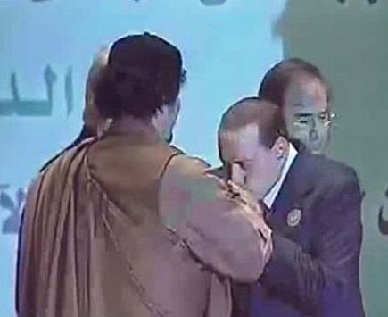 anche se non condividessi lo scenario da realpolitik e i machiavellismi che ne stanno alla base da me delinaeato, bisogna prenderne atto, perché in queste ore in tema di rapporti con la Libia i berluscones si affannano a dire una cosa che in sé è giusta, vale a dire che la politica italiana dell’attuale governo è la stessa che ha guidato quelle precedenti, di Andreotti-Craxi-Prodi-D’Alema ecc (a parte il bacio dell’anello al dittatore, che è valso mediaticamente un po’ come il bacio di Riina a Andreotti, ossia un “episodio” di nullo conto). Dunque questa è la bussola politica-economica con cui, se si vuole, bisogna fare i conti, ma non contingentemente, se no mi pare un po’ strumentale. Ossia interrogarci su quanto siamo disposti a pagare, in termini di italian way of life, dalla chiusura dei “nostri” rapporti non solo col dittatore Gheddafi, ma con tutti gli altri regimi dittatoriali del mondo, mi pare un pragmatico richiamo a porci con i piedi per terra. Almeno fino a quando il Pil sarà il deus ex-machina della politica economica in un mondo che magari non si vuole ma che ci è toccato vivere. Ho visto troppi risultati infelici delle “guerre umanitarie” o troppe bufale mediatiche (qualcuno in rete ricorda anche quella su Ceauscescu, che consistette nel dare l’ultima spallata a un regime – che personalmente mai ho condiviso – da parte di quella stessa nomenclatura che passò a comandare in Romania dopo essersi rifatta l’immagine) per aver fiducia in notizie scarse e rimediate su fatti e forze che nessuno può al momento valutare con certezza. Del resto, dal fasullo assalto di fasulli indiani alle navi inglesi che inaugurò la guerra di indipendenza americana al fasullo incidente del golfo del Tonchino che iniziò l’invasione Usa del Vietnam, le bufale non sono certo mancate nella storia moderna. Quindi, anche qui, nessuna esportazione di democrazia (tanto più che la mia idea di democrazia non è quella di La Russa e nemmeno di D’Alema), che le truppe nato se ne stiano a casa loro, è il popolo libico che deve decidere del proprio futuro, sulla base dei rapporti di forza esistenti. Del resto, a proposito di UE, non mi va che certi stati come Francia o Germania facciano gli eroi con la pelle degli altri, cioè la nostra, perché è facile dire sospendiamo la fornitura di armi, quando poi magari si scopre che il volume di affari loro è quasi nullo rispetto a quello di Finmeccanica.