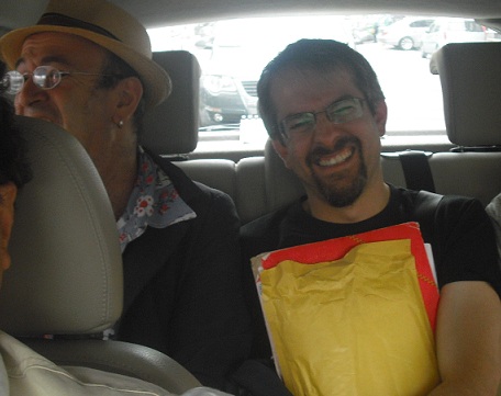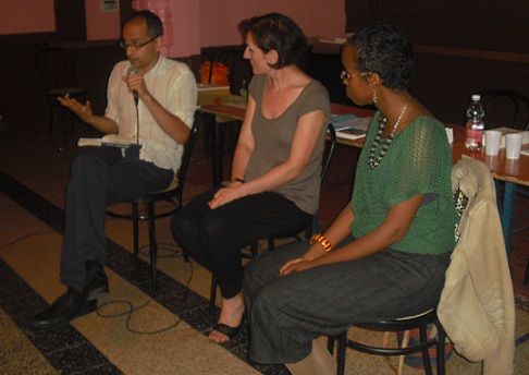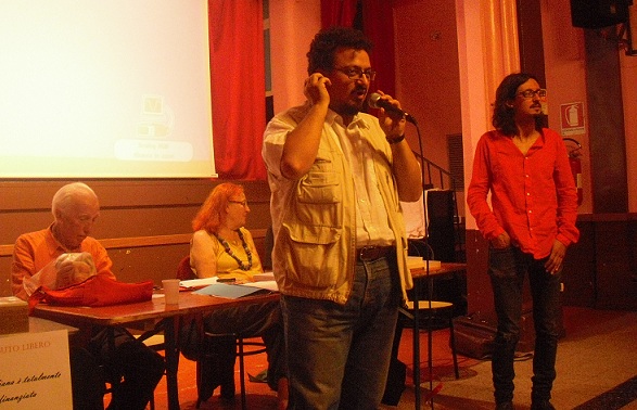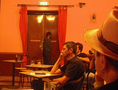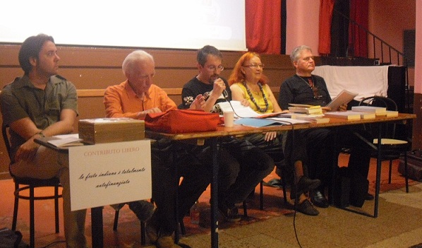 non si perda di vista anche l’eleganza di Franco Buffoni, che, all’estrema destra per chi guarda nella quinta foto dall’alto, appare un vero prelato — mi perdonerà l’assonanza — della poesia; né l’inquietante sguardo di Biagio Cepollaro, terza foto dall’alto …