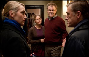Carnage parte da una fortunata piece teatrale di Yasmina Reza ( pubblicata con il titolo Il dio del massacro da Piccola Biblioteca Adelphi), che è anche cosceneggiatrice del film; una trama semplice, da camera, con quattro personaggi – due coppie di quarantenni – che rappresentano gli stereotipi dei comportamenti politicamente corretti: l’idealista, il disilluso, il cinico, l’insoddisfatta. Un quadro sui borghesi di oggi e sul loro essere e apparire, dove la facciata è rigorosamente corretta e convenzionale, rispettosi delle regole sociali, tolleranti e civili fino a quando qualche bicchiere di whisky e qualche attrito personale non li fa esplodere e li mostra nel loro vero essere, individui soli, insoddisfatti, quasi selvaggi. La storia si svolge in un appartamento di New York e dura un mezzo pomeriggio, inizia con un accordo formale tra due coppie di borghesi che non si conoscevano prima e che sono venuti in contatto perché i loro due figli di dieci anni si sono picchiati al parco e uno dei due ci ha rimesso un paio di denti. La madre della vittima – Penelope (Jodie Foster), impegnata nello scrivere un libro sul Darfur, quasi in devozione con le sofferenze dell’Africa, convinta che la cultura sia il mezzo necessario per la pace sinonimo di felicità – vorrebbe risolvere il problema in maniera civile ma è anche quella più rigida , più formale, più infelice. C’è suo marito, Michael (John C. Reilly), venditore di maniglie e pentole; sembra quello più semplice e bonaccione, un po’ succube della moglie, ma è anche quello più cinico e naif. L’altra coppia è formata dalla broker finanziaria Nancy (Kate Winslet) formale, paziente e a sua volta un po’ succube di suo marito l’avvocato Alan (Christoph Waltz), ossessionato dal lavoro e dal suo cellulare che squilla in continuazione. Da due coppie civili e controllate si trasformano in quattro persone incivili, aggressive e frustrate. Dove saltano rapporti e affetti consolidati fino al silenzio distruttivo finale. Prima coppia contro coppia, poi donne contro gli uomini e nella parte finale ognuno da solo e per suo conto. E’ un racconto cinico e costruito con buona maestria, forse un po’ troppo ‘costruito’ e stilizzato, con un cast di grandi attori ben diretti ma senza picchi o ‘improvvisazioni’ coinvolgenti e con un montaggio sicuro e veloce nonostante la partenza un po’ lenta e niente sia davvero imprevedibile o sconvolgente.