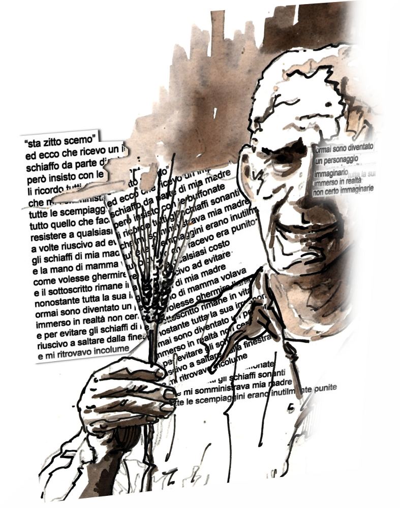 “Siate più lieti, leggermente più disinteressati, sorridete! Spero che concorrano alla vostra gioia le scritture più sconclusionate, anche nella situazione più insostenibile la certezza e la resistenza sono ancora possibili. Per un pubblico numeroso è necessario il ripetuto, la verità trafitta in pieno dalla poesia, il «tu» dedicato a tutti senza discriminazione alcuna. Vivere e morire senza accorgerci di niente, correndo come matti dietro improbabili onorificenze letterarie, inseguendo addetti regionali alla varie culture. Avessero ammazzato gli ebrei con l’idea di mangiarseli avrebbero pensato prima a ingrassarli, scrivo dunque un elogio al cannibalismo. Beati quelli che vivranno dopo di me. È così che capisci di andartene, gli sguardi dei tuoi cari si abbassano, le parole stentano ad esser pronunciate, i figli ammutoliscono. Divorato dalla febbre preparo la valigia per andare in ospedale. Le mani indugiano sulla cerniera, la paura è la stessa di quel giorno di maggio del 1957. Allora vi disponevo con cura i miei libri, con gli angoli delle pagine tutti arricciati; adesso i calzini, le mutande, i pigiami, perfettamente stirati e ricamati. Chiudo tutte le finestre, ripongo nella custodia la macchina da scrivere, ritorno tranquillamente nel niente da dove sono venuto. Nei miei versi è la mia resurrezione”.