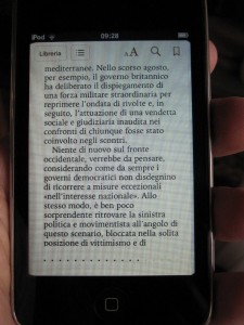 Purtroppo, come per altri eReader, con iBooks (di iPad) si perde completamente il carattere e l’impaginazione originale del testo, che viene ridimensionato e utilizza font spesso agghiaccianti (Georgia, Verdana…).