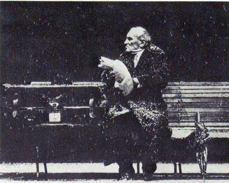 Una tempesta di neve segna la situazione atmosferica che intrappola Minetti. Il vecchio attore entra nell’atrio dell’albergo come per cercare un riparo; è vestito con un lungo cappotto invernale, un cappello a larghe tese, un ombrello e si porta dietro tutti i suoi valori, contenuti in una grande valigia. Un clochard? Niente, di fatto, può confermare o negare questa ipotesi. è comunque un’ipotesi attendibile, o per lo meno registicamente credibile. Ma nel Minetti la parola prevale sulla caratterizzazione; il senso oltrepassa la definizione sociale o psicologica del personaggio. L’insistenza della tempesta, inoltre, la sua rilevanza, non è casuale; così come in altri testi, Bernhard costringe il personaggio in un dispositivo già di per sé significante, che contiene il senso di una condizione generale, una sorta di glaciazione che attanaglia la società. La tempesta riferisce la desolazione del reale, come una presenza ingombrante che vincola ogni azione; ed è la focalizzazione di un’esistenza inchiodata alla furia dei venti, al ghiaccio, al freddo perenne, e dunque all’irrigidimento. La tempesta come allegoria d’un condizione che mortifica l’esistenza. L’attesa del direttore di teatro è l’espediente che serve a Minetti per mantenersi al caldo; allontanandosi dalla tempesta, il vecchio attore ha l’occasione di rovesciare nel tempo dell’attesa tutte le sue ossessioni. Il suo regno è la tempesta: da lì proviene ed è là che tornerà. Il suo scopo è ingannarla, con ciò tentando di sfuggire al suo morso, alla sua discreta e, allo stesso tempo, mortifera realtà. La tempesta espone Minetti, lo proietta nel mondo della socialità, lo fa uscire dal buio; l’albergo diviene la grotta, il rifugio momentaneo, il luogo dove le sue verità ottengono ascolto. Certo Minetti, anche in pubblico, espone il suo distacco dal senso comune; eppure il suo auto-annichilimento è l’itinerario di chi vuole attraversare la tempesta, ben sapendo che alla fine, alla fine del suo itinerario, solo la tempesta contrassegnerà, con la sua presenza perenne, il paesaggio.