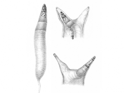 Prendete ad esempio questa specie di verme chiamato Leucochloridium paradoxum che vive nelle feci di animali. Certe specie di lumaca si nutrono delle feci e ingeriscono il parassita, il quale si espande al loro interno provocando il rigonfiamento delle antenne che vedete. Le antenne diventano queste estremità pulsanti molto visibili che assomigliano a bruchi o a larve che sono le prede favorite degli uccelli. Come se non bastasse, il verme in qualche modo riesce a controllare il comportamento della lumaca spingendola ad arrampicarsi sulla sommità delle piante dove diventa facile preda degli uccelli.