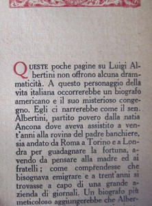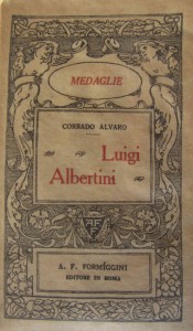 È un libricino di sole cinquantasei pagine stampato in 32°; dimensioni praticamente uguali a quelle di un iPhone. Quando fu pubblicato, nel 1925, costava 2 lire. Ho ritrovato la prima edizione quasi per caso e l’ho comprata per alcune decine di euro. L’autore è Corrado Alvaro, il titolo “Luigi Albertini”. L’ho letto con la cura e l’attenzione che richiedono le piccole cose preziose. Alvaro l’ha scritto nell’autunno del 1924 per l’editore Formiggini che aveva deciso di inaugurare con quel libro la collana ”Medaglie” dedicata ai profili di personaggi illustri. La collana ebbe qualche difficoltà per i suoi contenuti non proprio “allineati” con il regime e per questo molti volumi furono ritirati dalle librerie. L’oggetto del libro di Alvaro è Luigi Albertini, senatore del Regno e grande direttore del “Corriere della Sera”. Il libro è piccolo, ma il suo contenuto va oltre la biografia, perché raccontando di Albertini, Alvaro in realtà narra del clima politico nei primi anni del funesto ventennio fascista insieme al ruolo e al costume del grande giornalismo italiano.