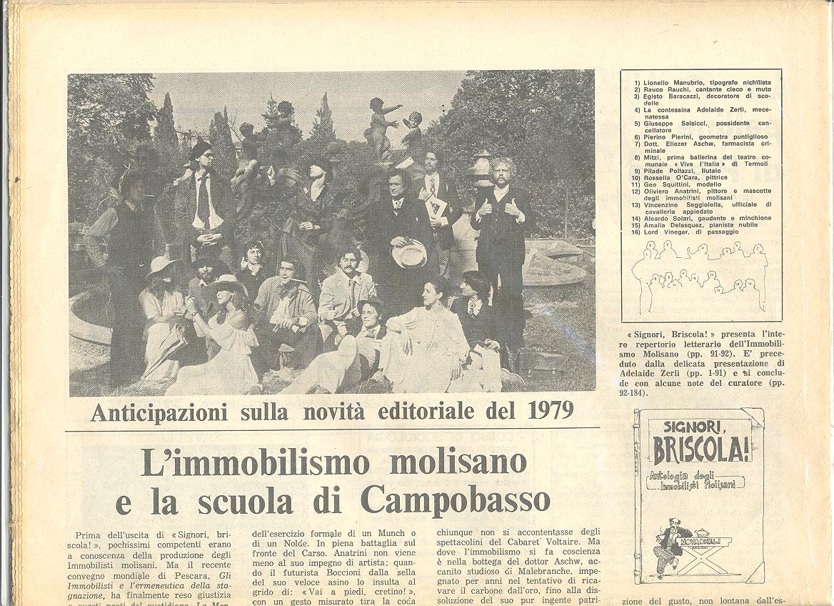 Immobilismo molisano e il Male . lo slogan era, se ricordo bene, “perché stare fermi quando si può essere immobili?“. A chi venne l’idea e chi si immobilitò con più vigore?