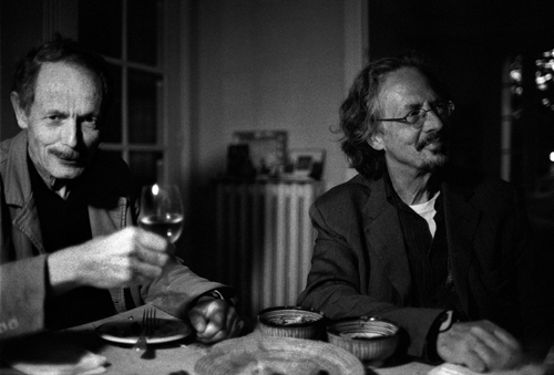 Peter Handke si siede a una tavola da pranzo dinoccolato e assente. Osserva dal bordo di un paio di lenti le schermaglie di due commensali che cercano di scambiarsi un contegno. Avrebbe voglia di prenderli a palline di pane.