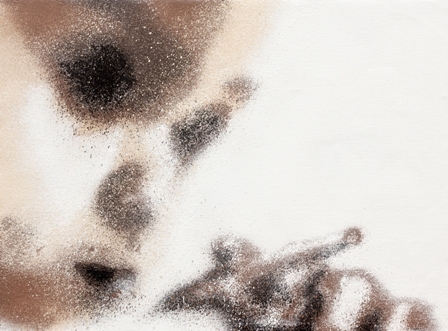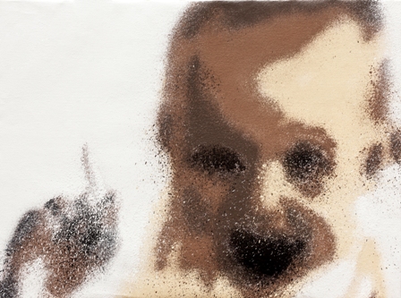 I suoi dipinti si presentano come un temporaneo enigma formale e cromatico, da interpretare, dapprima concentrandosi sui contorni delle macchie e poi appoggiando lo sguardo sulla definizione dell’immagine, che finirà, in un secondo tempo, mano a mano che ci si allontana dall’opera, col palesarsi in tutta la sua inequivocabile forma, alla quale siamo ora in grado di dare un nome (bambino, cane, aereo, etc.).
