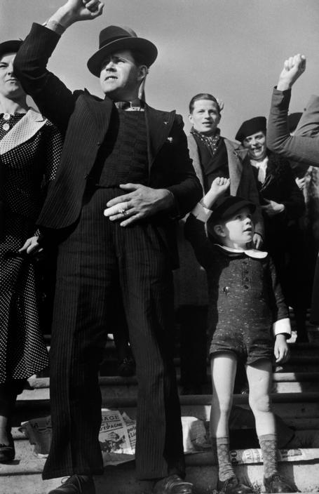 FRANCE. Paris. October 1936. Man and boy at Popular Front rally.