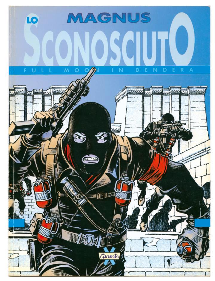 Lo Sconosciuto, Unknow “senza la n finale” come deve precisare spesso, è forse il personaggio più forte, e più longevo, di uno dei maestri del fumetto, non solo italiano: Roberto Raviola, in arte Magnus. Il quale peraltro ha creato altri eroi-antieroi come Kriminal, Satanik, Alan Ford, Necron, I Briganti. Ma nessuno di questi ha ricevuto un’attenzione così meticolosa, così appassionata, come “il viandante” ex legionario, avventuriero, contractor, guardia del corpo, che negli anni ’70 e ’80 percorre le zone calde del pianeta passando da un’avventura all’altra, da un pericolo all’altro, da una sconfitta all’altra. E dire che si tratta di una miniserie: nato nel 1975 per la Edifumetto di Renzo Barbieri, Lo Sconosciuto si conclude nel 1976, con sei avventure. Poi Magnus lo riporta in vita nel 1982, sulle pagine di Orient Express, fino al 1984. In seguito è stato più volte revisionato, rimontato, ripubblicato, da Granata Press, Einaudi, Edizioni Grifo, e Rizzoli Lizard, con un albo risolutivo del 2012.