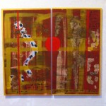 Avendo scritto poesie per trent’anni ho considerato le parole soprattutto come delle sonde per l’esplorazione del senso. Il suono, l’immagine che nella mente scorre, la disposizione grafica sulla pagina: il gioco della poesia si svolge nel continuo rimando tra immagine, suono e senso. Ma cosa accade quando è proprio la materia della parola a presentarsi in primo piano, nell’oblio del significato, nella sparizione del suono? La parola che s’incarna nella materia è diventata già una traccia di un pensiero: i suoi contorni non appartengono più all’invisibilità delle idee ma al sensibile delle materie. La parola diventa cosa tra cose, un pezzo di muro e di mondo, una superficie rugosa iscritta. Queste tracce concrete del pensiero sono come voci semisepolte nelle cose. Sono le parole guardate da fuori, senza la complicità del senso. Così ho costruito i miei fondi con le tempere all’uovo: fabbricarsi i colori è come inventare una propria grammatica. E poi, con questo bagaglio di memoria, ho provato ad incontrare le materie della città ho provato a piegarle a questo mio disegno: il cemento sulla tela, come l’intonaco minerale, come il catrame o il gesso. Il mordente per legno l’ho utilizzato come inchiostro. Sopra e dentro queste superfici graffiate ho fatto serpeggiare e restare i frammenti di versi che in quello stesso momento stavano venendo alla luce, nel dialogo col fondo e con la sua resistenza. (B.C.)