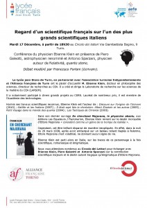 Il lycée Jean Giono di Torino, in collaborazione con Il Circolo dei Lettori, l’Alliance française de Turin e l’associazione Indypendentemente, hanno il piacere d’invitarla all’incontro con Etienne Klein, directeur de recherches au CEA. Dirige il Laboratoire de recherche sur les sciences de la matière du CEA (LARSIM) e ha partecipato a importanti progetti presso il CERN. Membro de l’Académie des technologies, ha pubblicato : Discours sur l’origine de l’Univers (2010) ; Galilée et les Indiens (2007) ; Il était sept fois la révolution. Albert Einstein et les autres (2005) ; Petit Voyage dans le monde des quanta (2004) ; Les Tactiques de Chronos (2003). Molti suoi libri sono tradotti in Italiano.
